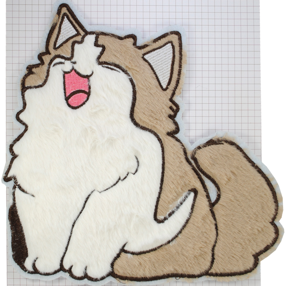Аппликация пришивная мех Поющий кот, 24,5*24,5см, бежевый, розовый, белый, шт