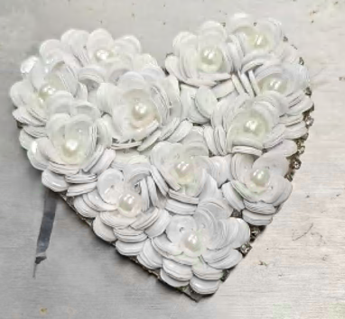Аппликация пришивная, пайетки, Цветочное сердце, белый, жемчуг, шт