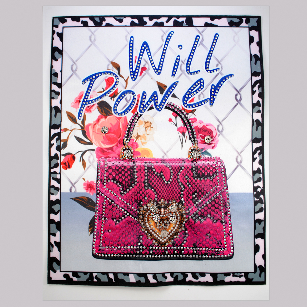 Аппликация приш. Сумка Will Power, 19*23,7см, роз., син., бел., стразы, шт
