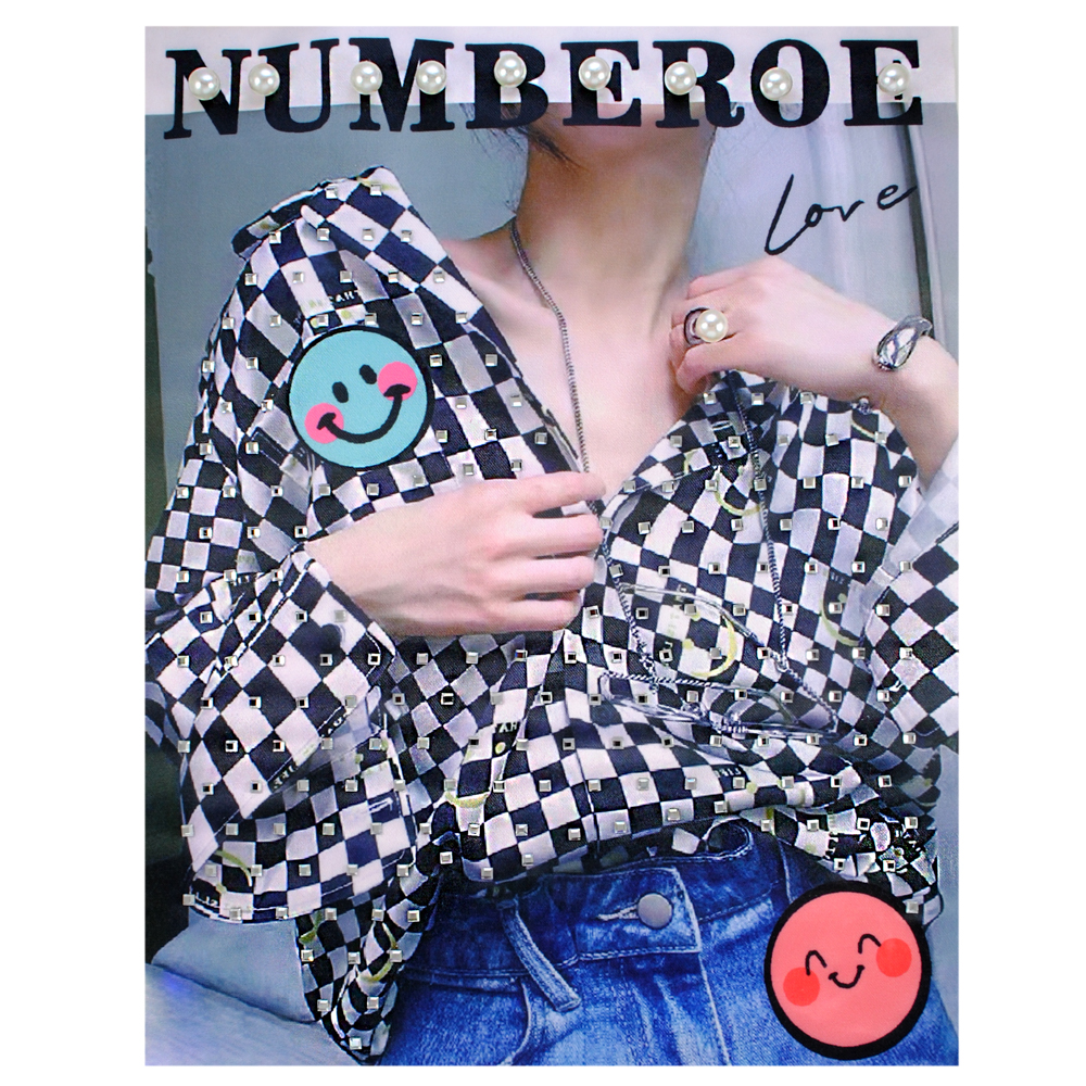 Аппликация тк. приш. с бус. и стр. Numberoe шахматная рубашка, 26*20см, черн., роз., бел., сер. шт