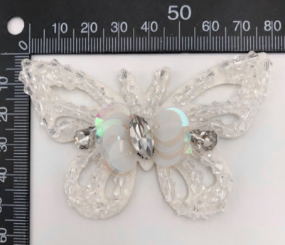 Аппликация пришивная бисер и пайетки Бабочка, прозрачный, белый, хамелеон, шт