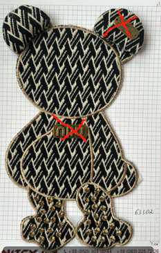 Аппликация тканевая Медведь, 15,5*28см, черный, бежевый, стразы, шт