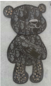 Аппликация тканевая Мишка с бананкой, 29см, графитовый, белый, стразы, шт