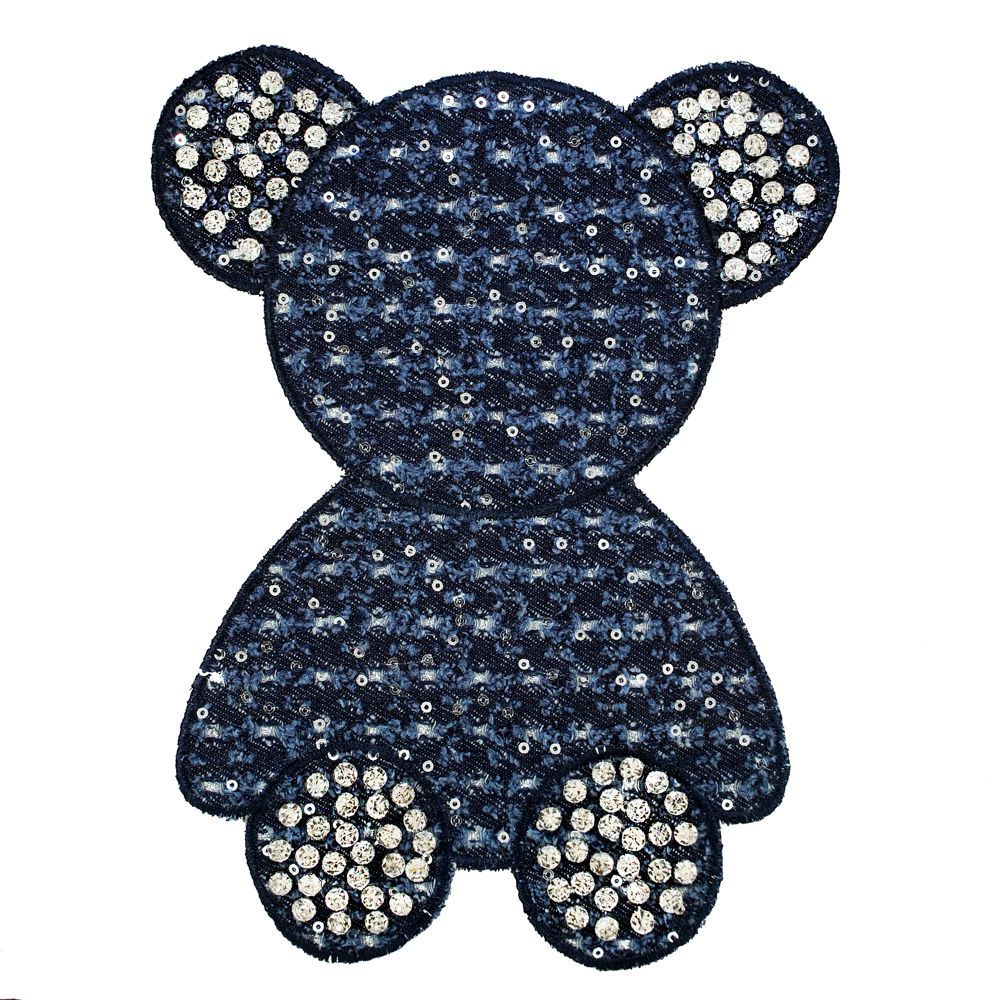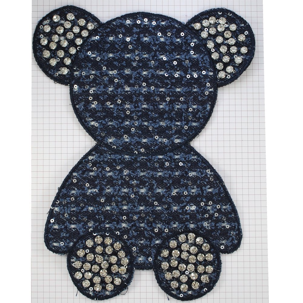 Аппликация тканевая пришивная Мишка, 18,5*24,5см, пайетки, темно-синий, белые камни, шт