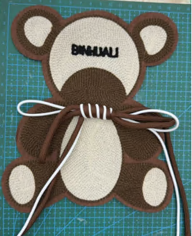 Аппликация тканевая пришивная Мишка с бантом, 21*17,5см, коричневый, бежевый, черный, шт