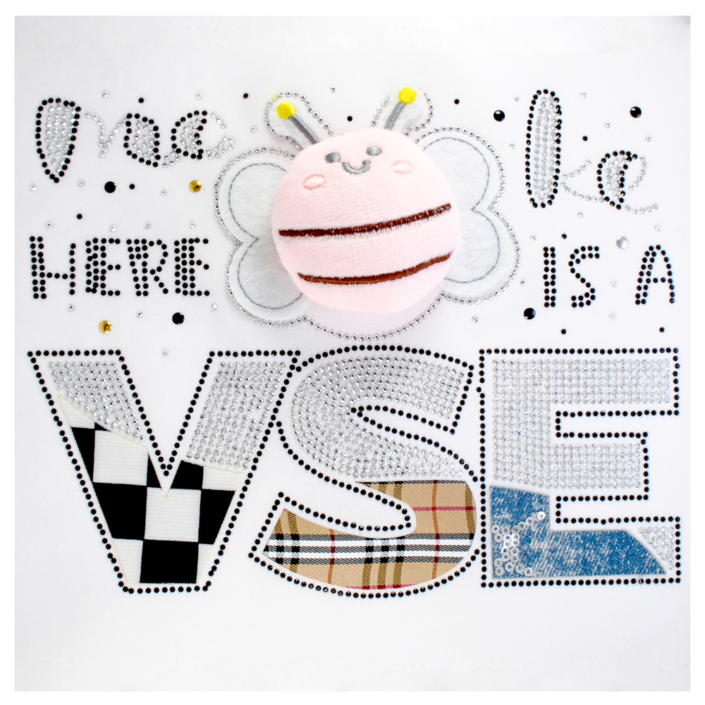 Аппликация из страз с тк. приш. розовой плюшевой пчелой VSE, 21*16,5см (пчела 9*8см), черн., бел. шт