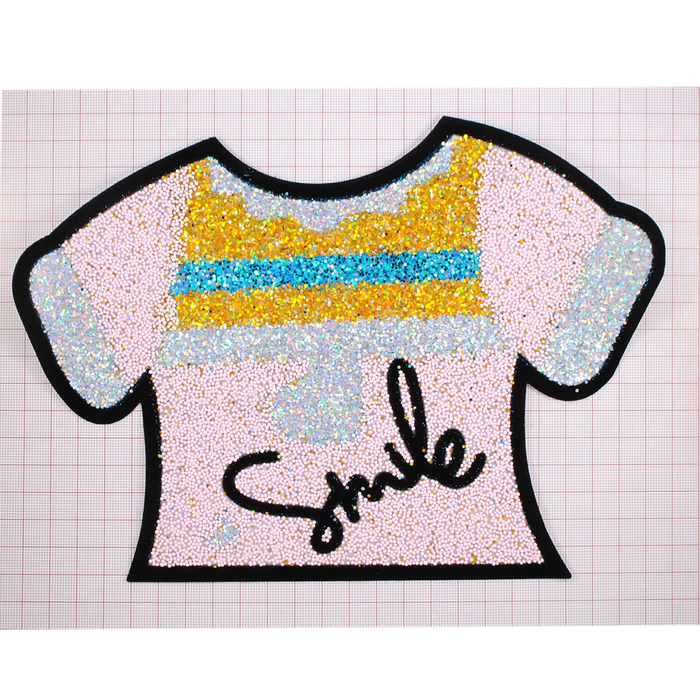 Термоаппликация с глиттером Футболка Smile, 16*23см, черный, розовый, синий, золото, серебро, шт