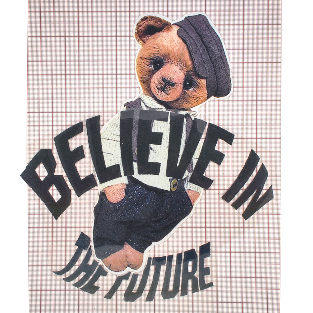 Термоаппликация светоотражающая Мишка в шапке, 20*23,5см, коричневый, черный, шт.