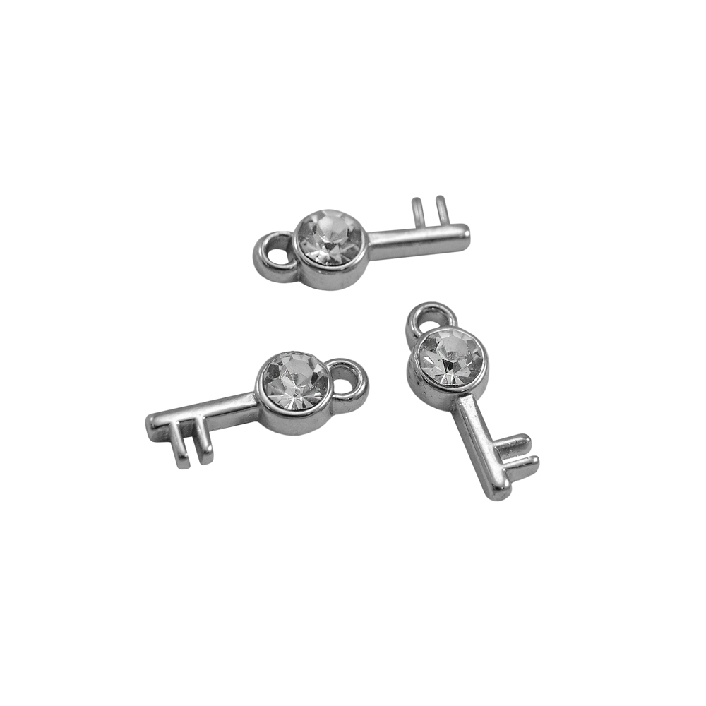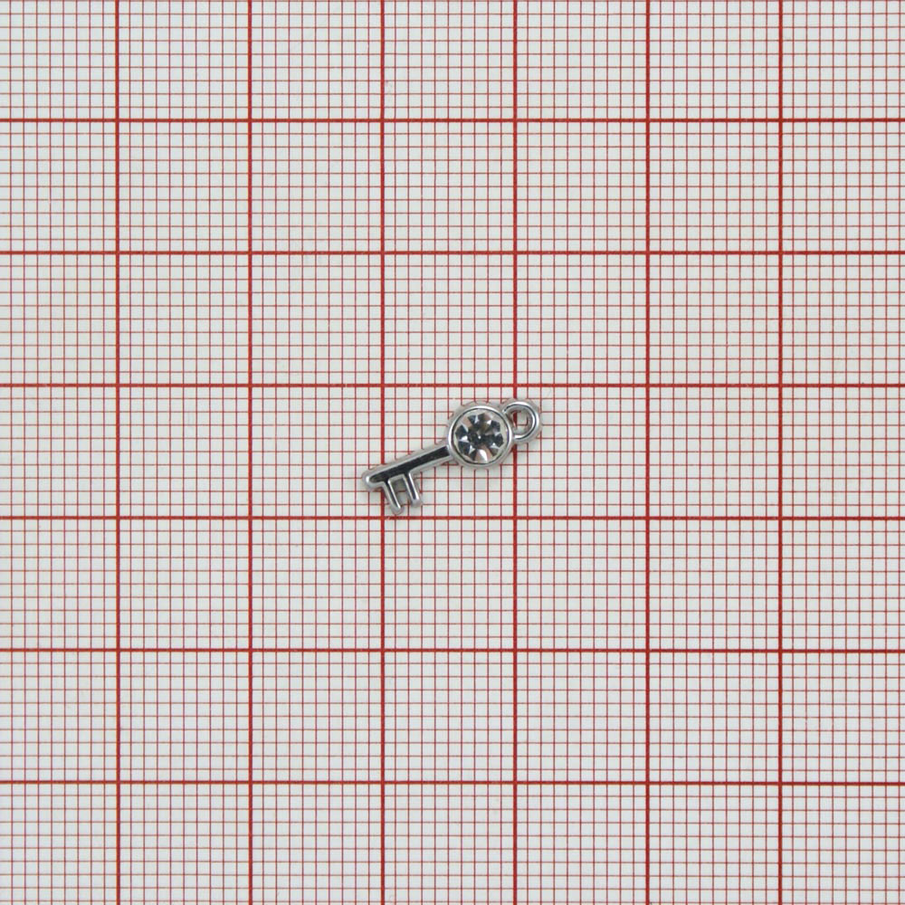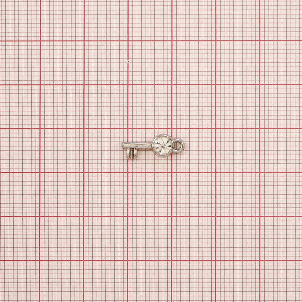 Подвеска бельевая Ключик 14,5*5,4мм NIKEL и белый камень, шт