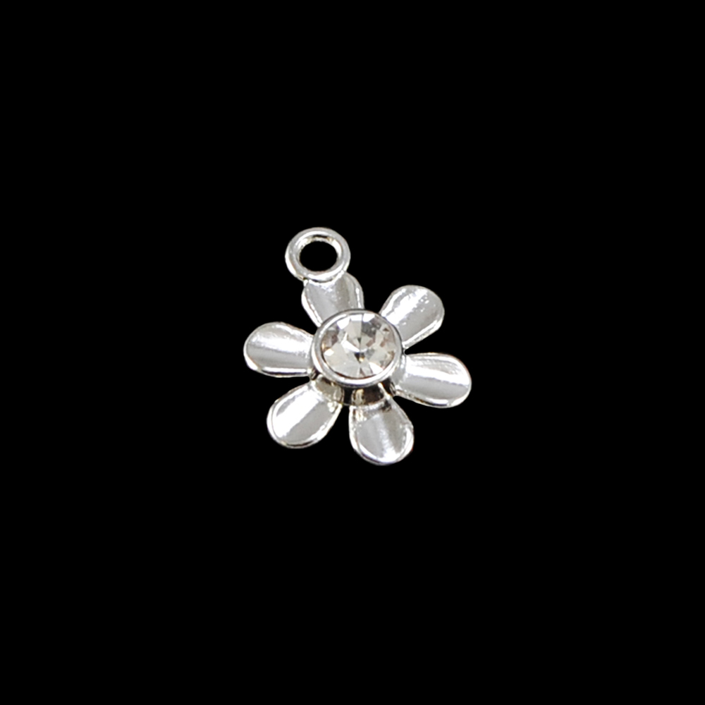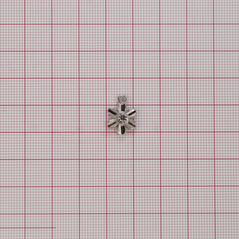 Подвеска бельевая XT1022 Ромашка 6 12,5*11мм NIKEL и белый камень, шт