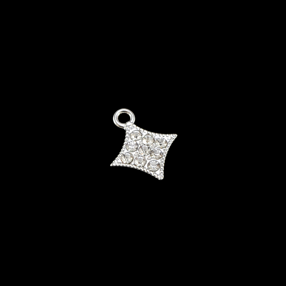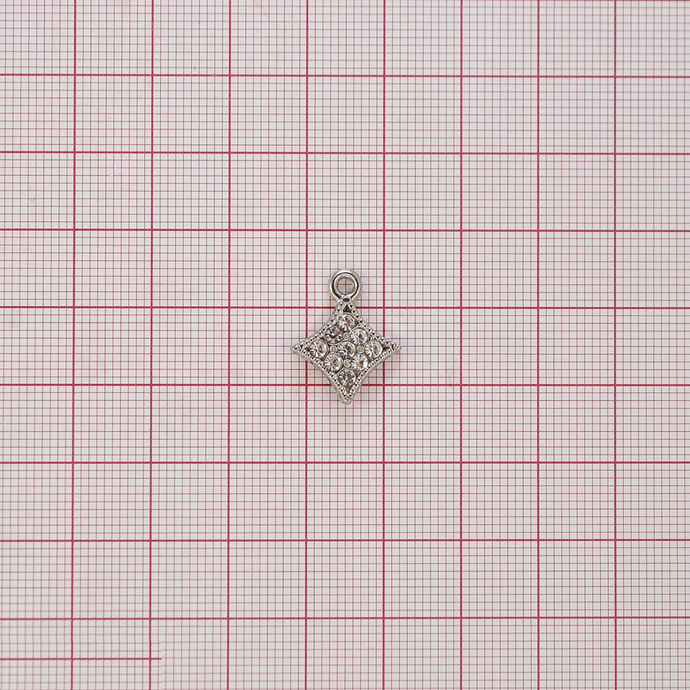 Подвеска бельевая XT335 Ромбик 14*14,3мм NIKEL и белые камни, шт
