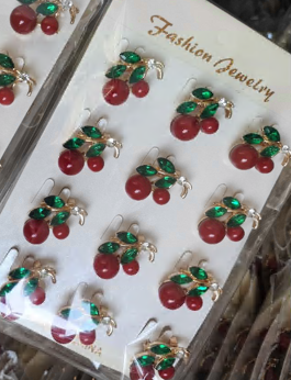Комплект брошей Вишни, золото, зеленый, красный, белый камень, шт