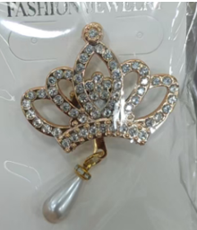 Брошь Корона, золото, белые камни, шт