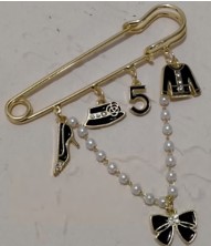 Булавка (туфли, панама, 5, кофта, бант), 6см, золото, черный, белый, бусины, шт