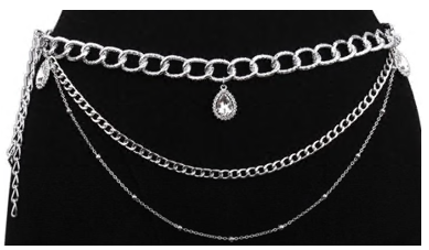 Пояс металлический Цепи и белый камень в оправе, никель, шт