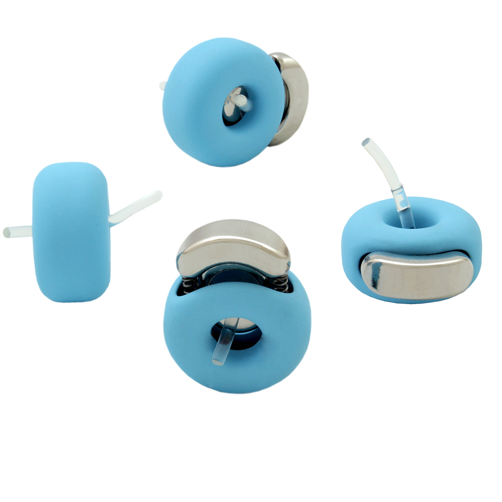 Фиксатор металлический круглый, 18*9,5мм, никель, голубой, силикон, шт