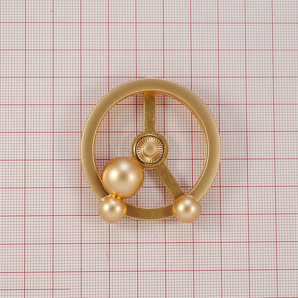 Кнопка металл кольцо с бусинами, матовое золото, 55мм, шт.