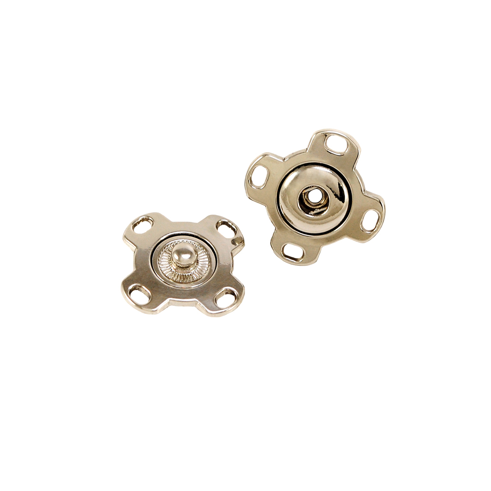 Кнопка металлическая пришивная потайная Квадратные ушки 20мм, никель, шт