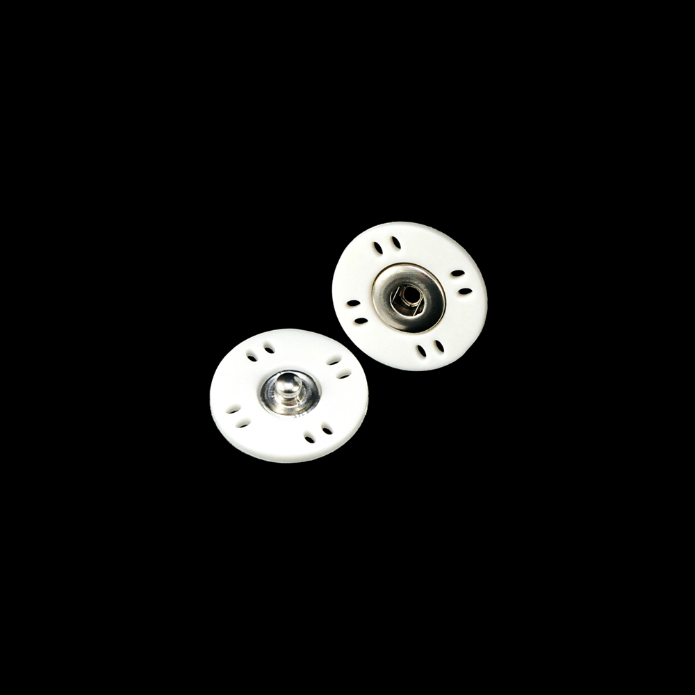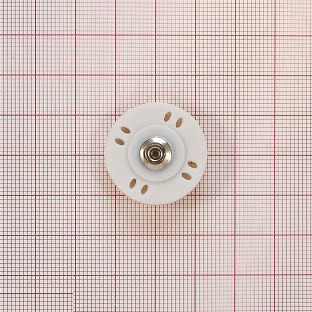 Кнопка пластик пришивная потайная Круглая 8 отверстий 25мм, белый пластик и металл никель, шт
