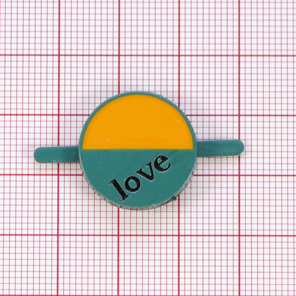Краб металл, Круг Love, 2*2см, желт., зел., эмаль, шт
