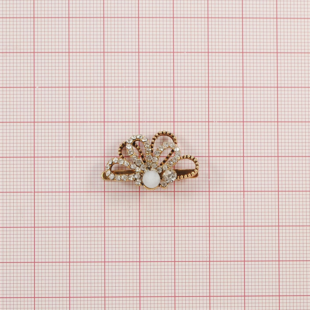 Краб Камни в металле Лепестки, 1,7*2,4см, antique gold, белый, жемчуг, шт