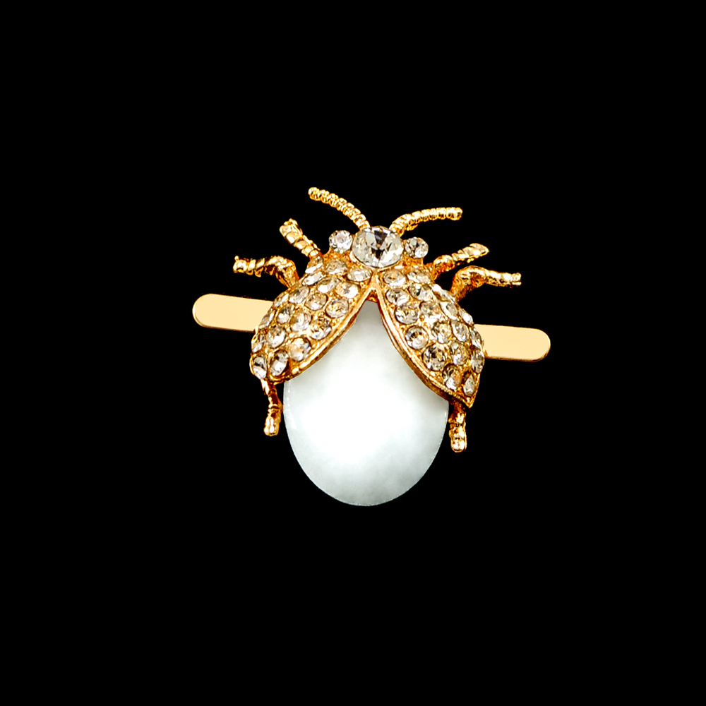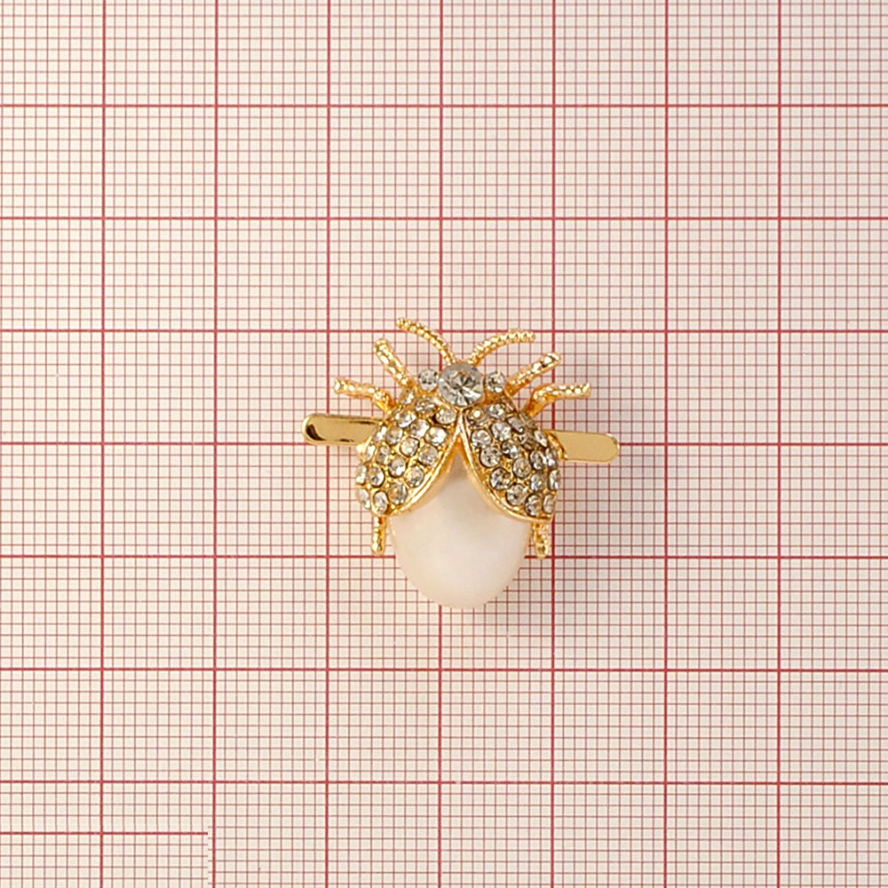 Краб Камни в металле Жук 13*23мм золото, белые камни, белый жемчуг, шт