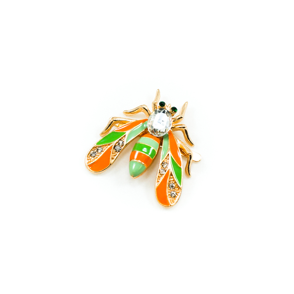Краб металл Златоглазка 3,5*3,5 GOLD белые и зеленые камни, оранжевая и светло-зеленая эмаль, шт