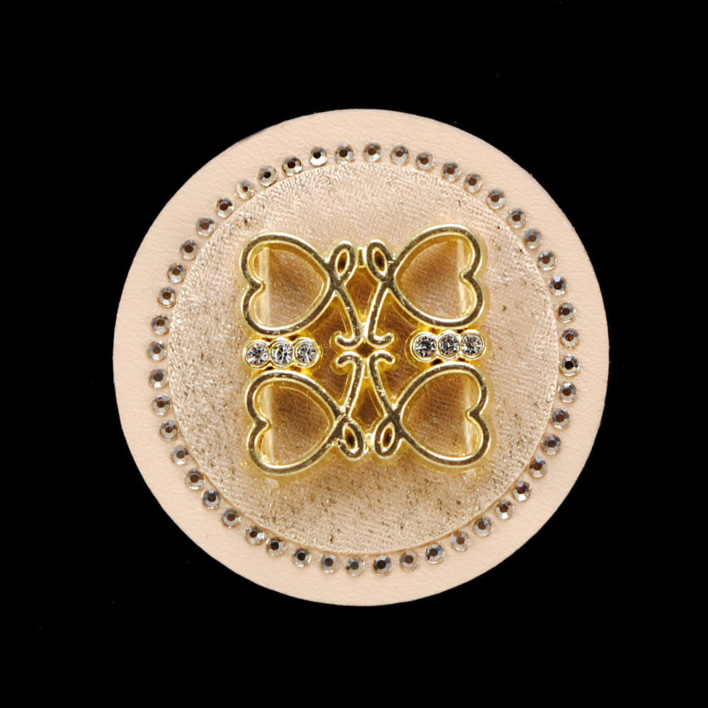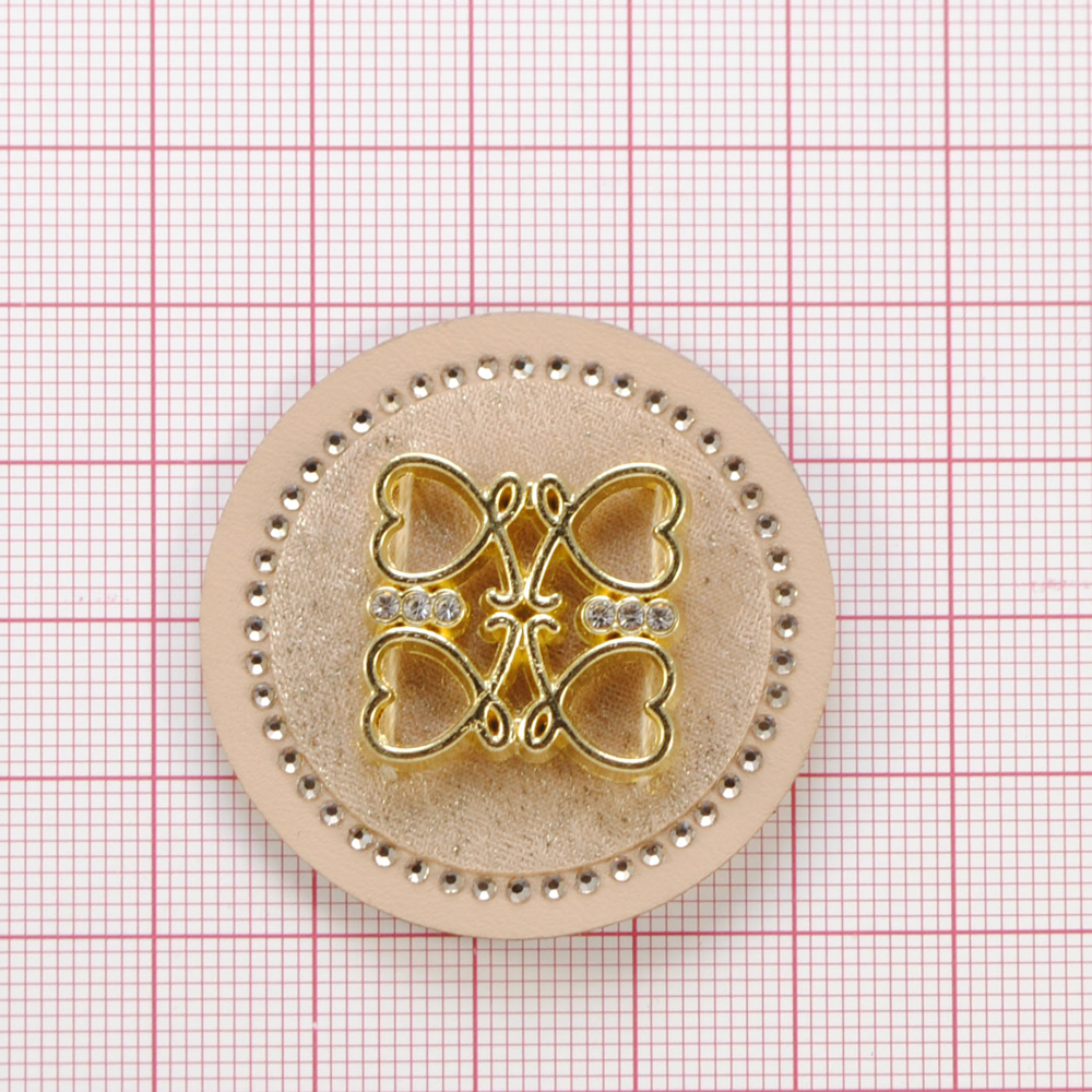 Лейба кожзам Сердца со стразами, 4*4см, бежевый, золото, шт