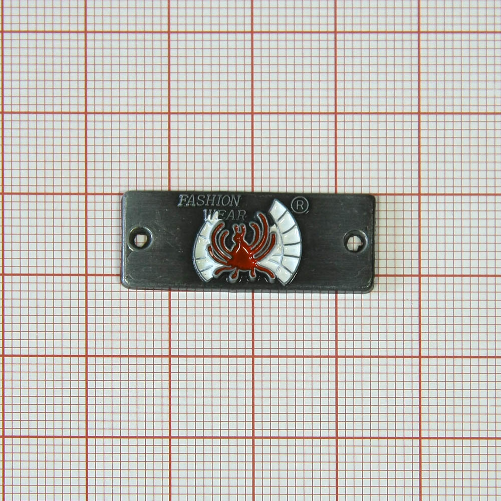 Лейба металл Fashion wear Огонь antik zink, бело-красная эмаль, 30*12мм