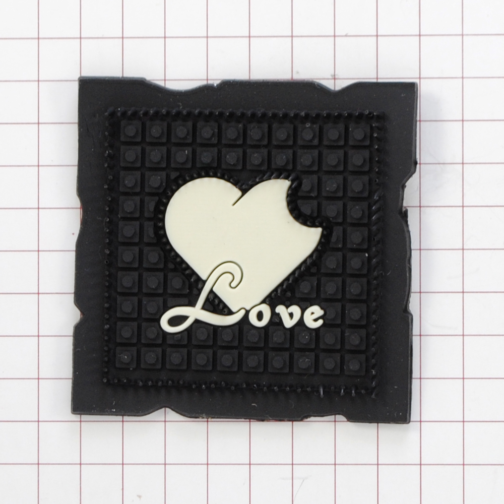 Лейба рез.,сердце LOVE, черный, бежевый, 4*4см, шт
