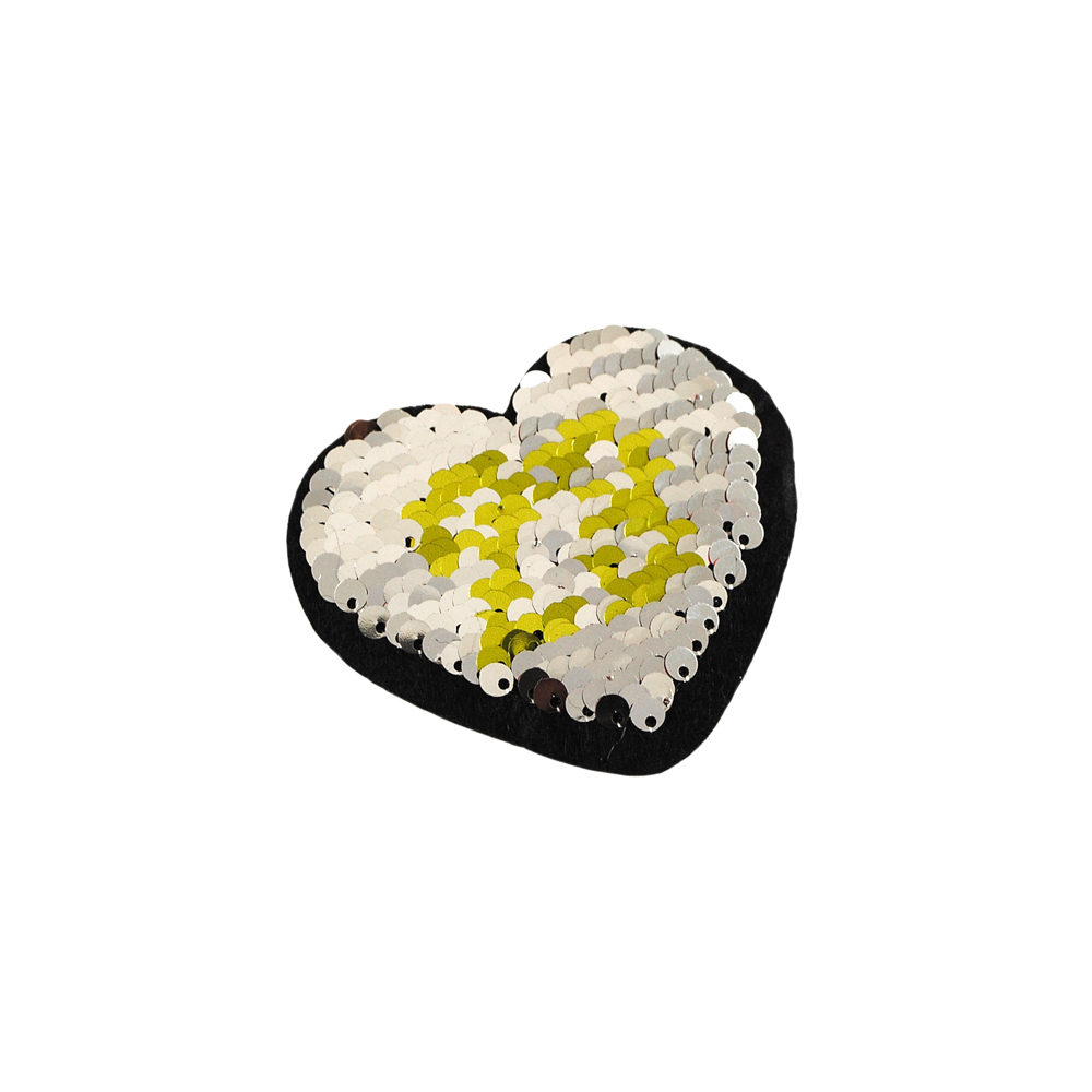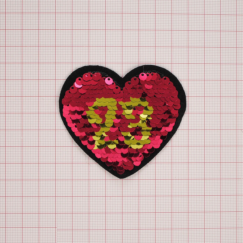 Аппликация пришивная пайетки двусторонняя Сердце 23 красные и золото, 7*8см, шт