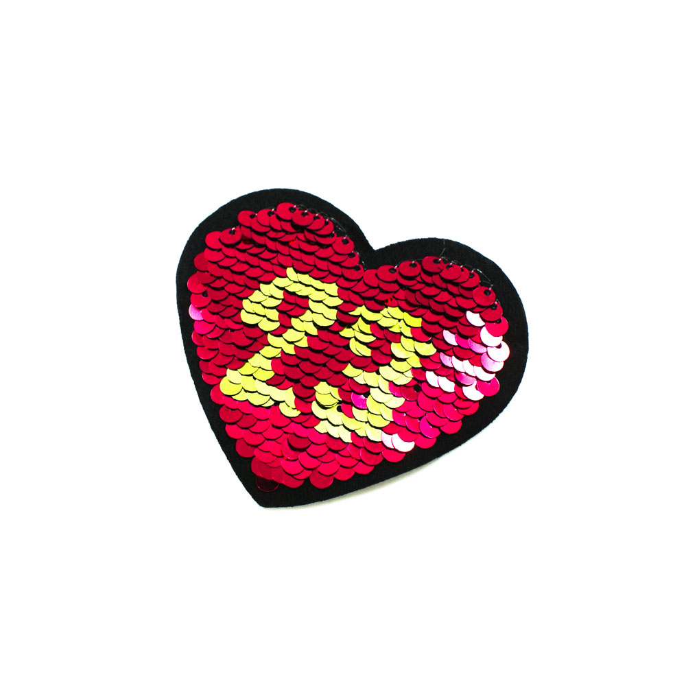 Аппликация пайетками насыщеного красного оттенка будет ярко выделяться на фактически любом материале. Термонашивка в форме сердечка замечательно впишется в дизайн женской и детской одежды, независимо от стиля, и сделает образ более запоминающимся.