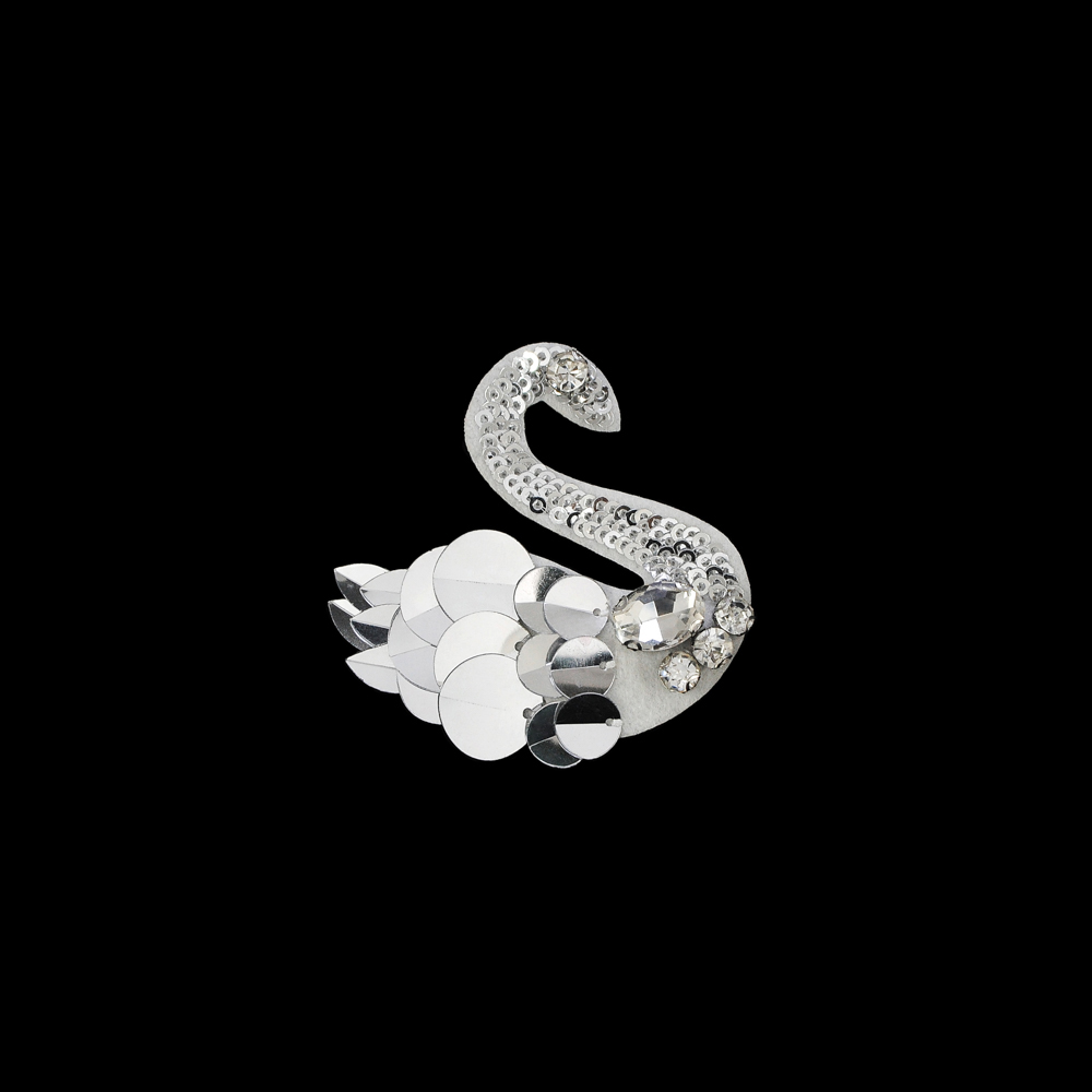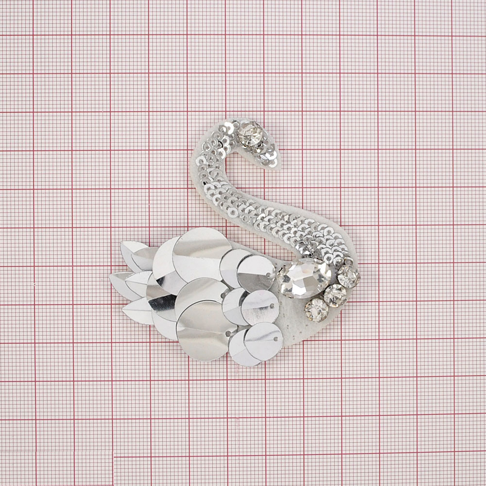 Аппликация пришивная пайетки Лебедь 6*6см белый, белые камни crystal, серебряные пайетки, шт