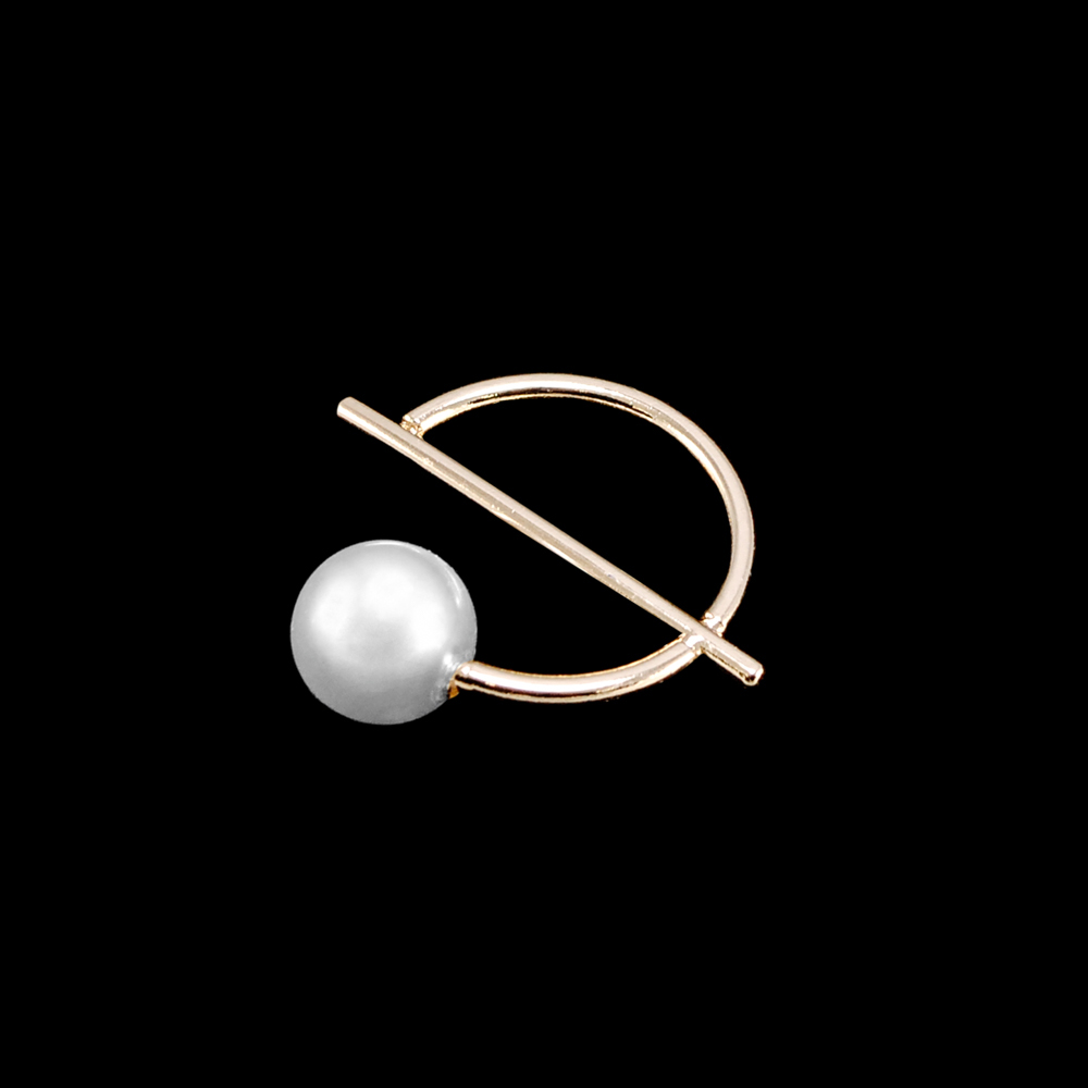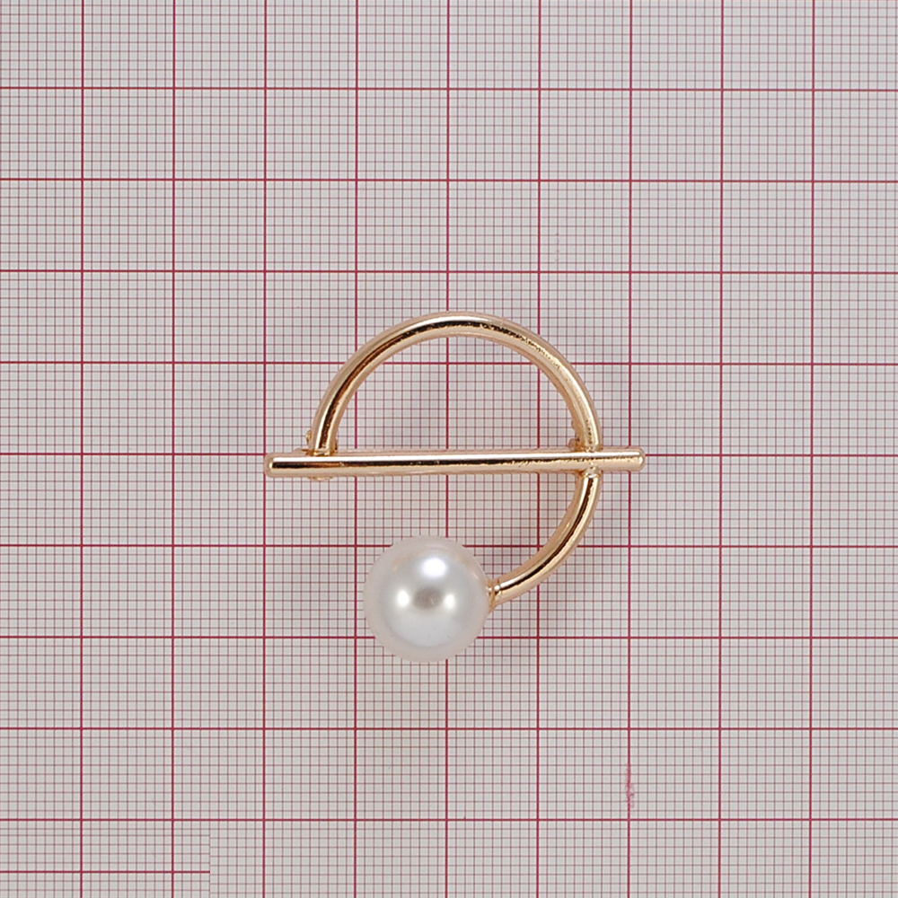 Брошь металл Жемчуг Полукруг 4*4см GOLD, белый жемчуг