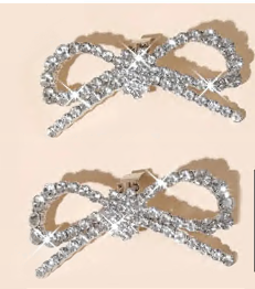 Зажим для обуви Бантик, 7,8*3,6см, никель, белые камни, шт