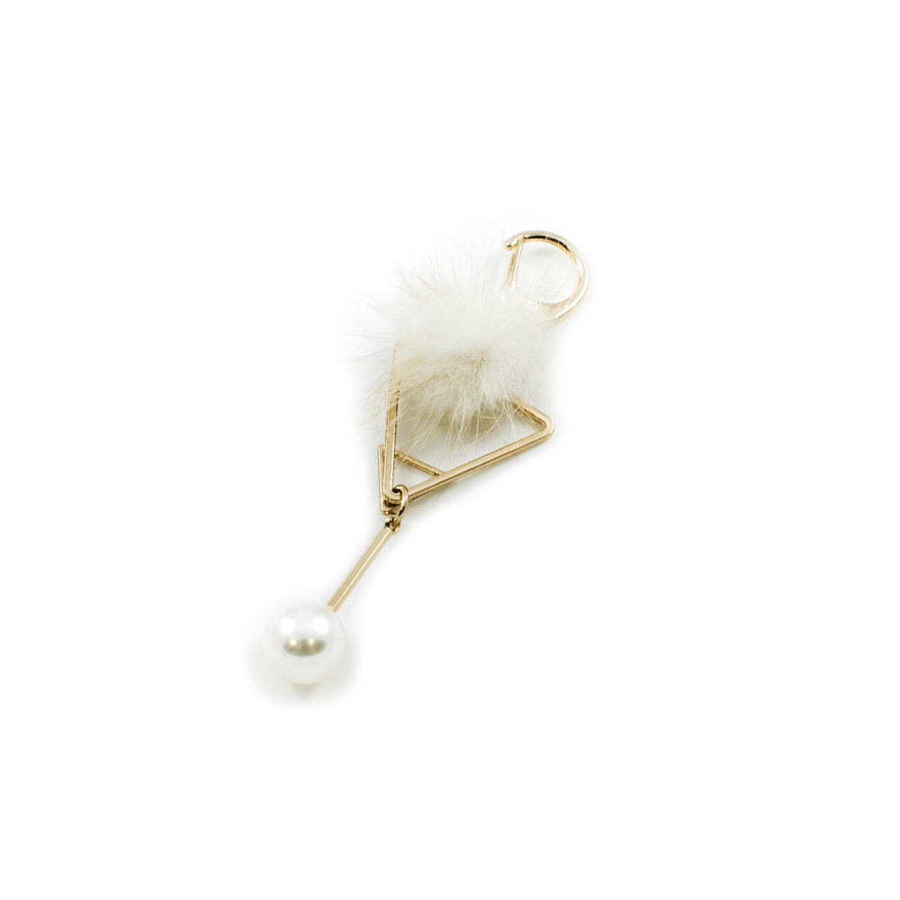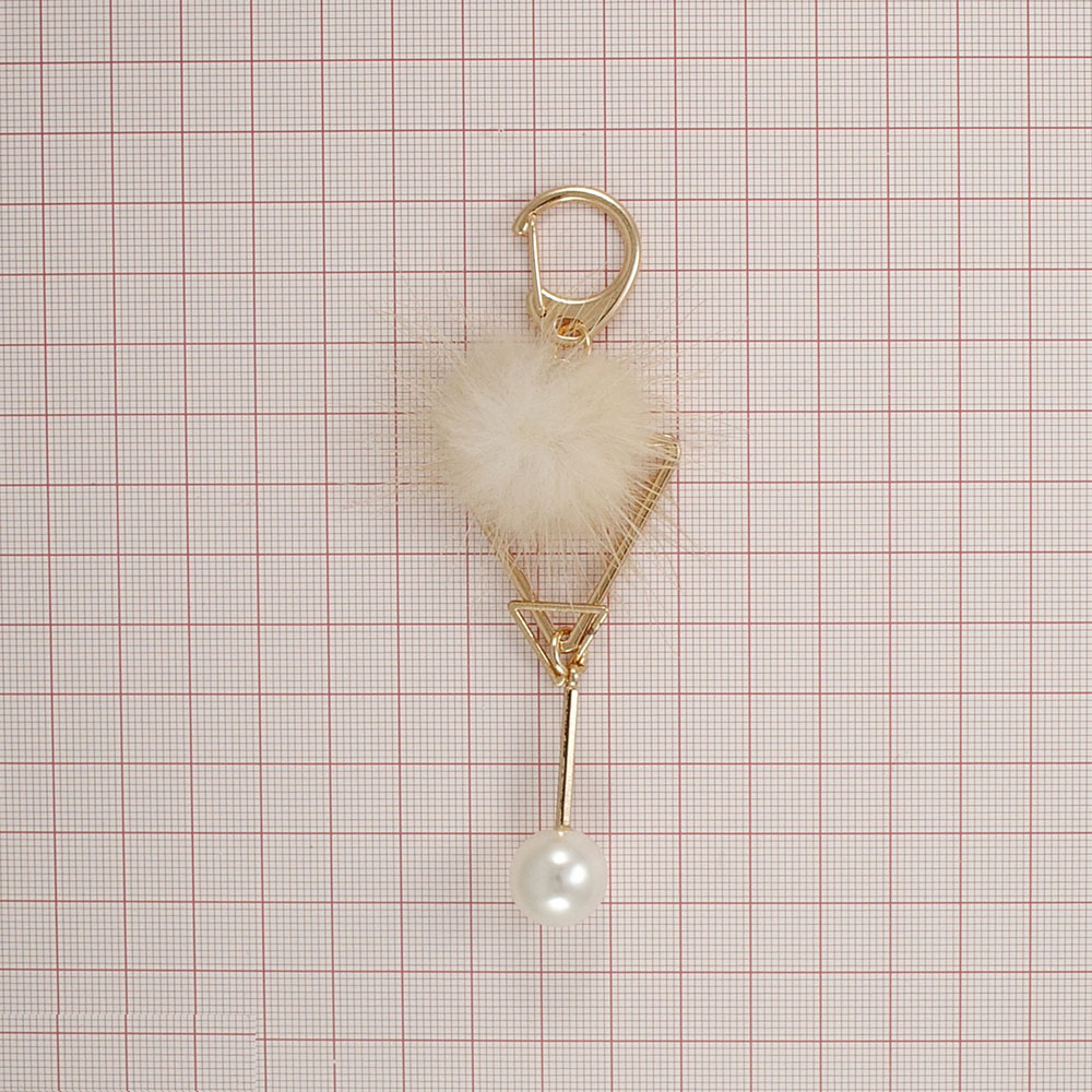 Подвеска металлическая с мехом 2 Треугольника 4*10,3см, золото, бежевый мех и белый жемчуг, шт