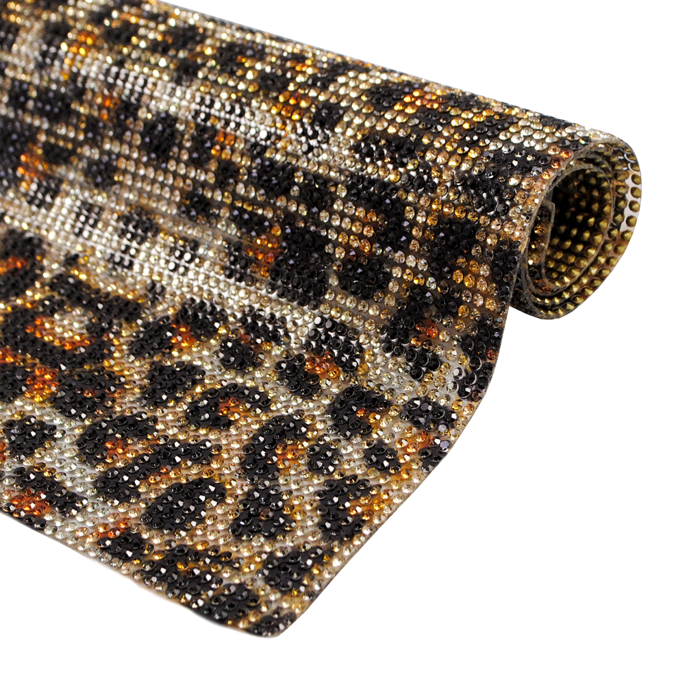 Стразы полотно клеевое, леопард, черн, оранж, беж, камни, 40*24см, 1лист