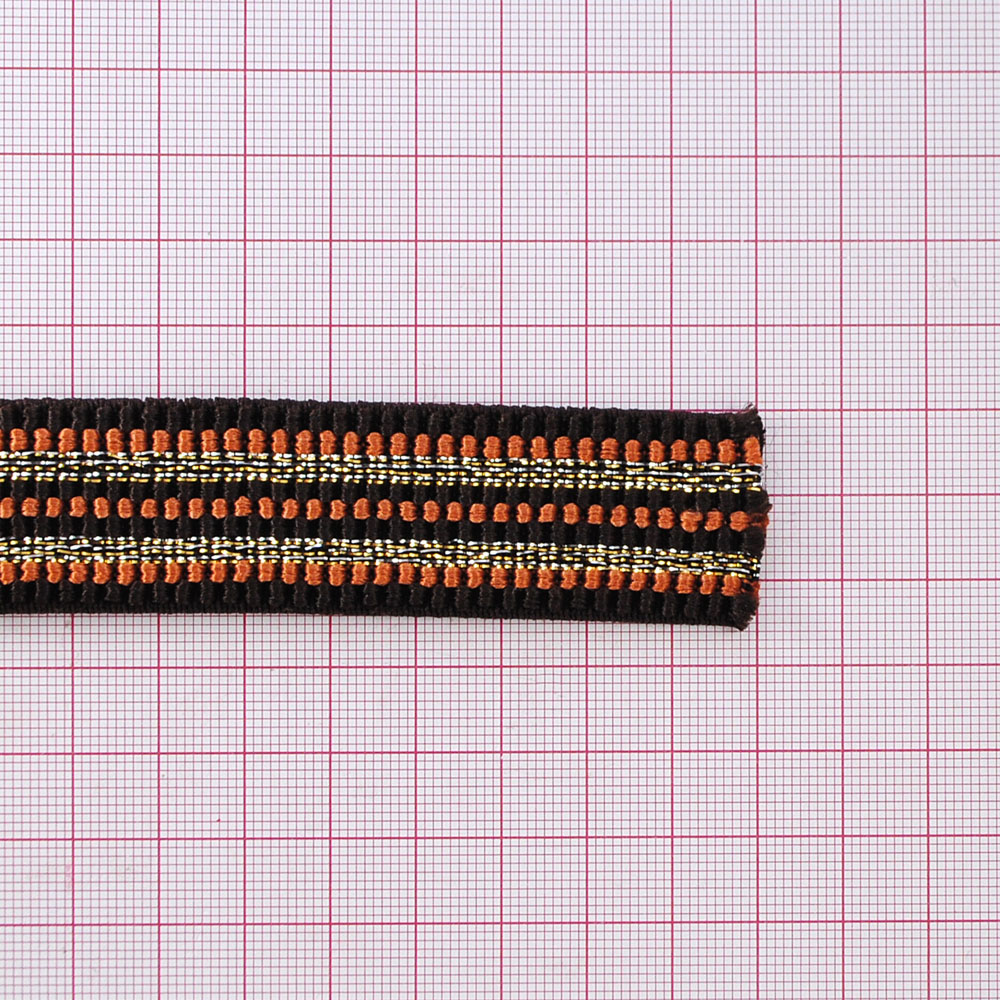 Резинка люрекс рельефная Полосы 2,5см, коричневый, бежевый и серебряный люрекс, 30ярд