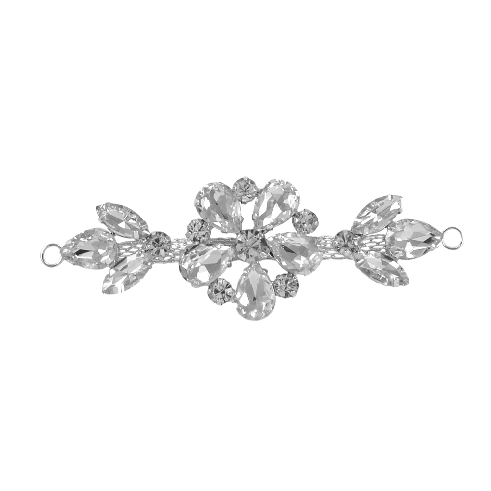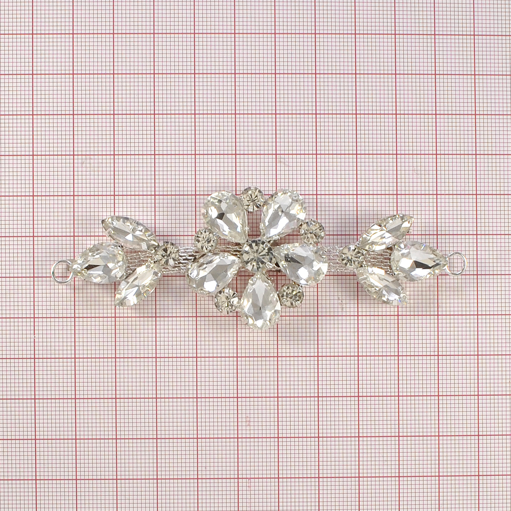 Перетяжка стразы Цветок, 10*3,5см, никель, белые камни, шт