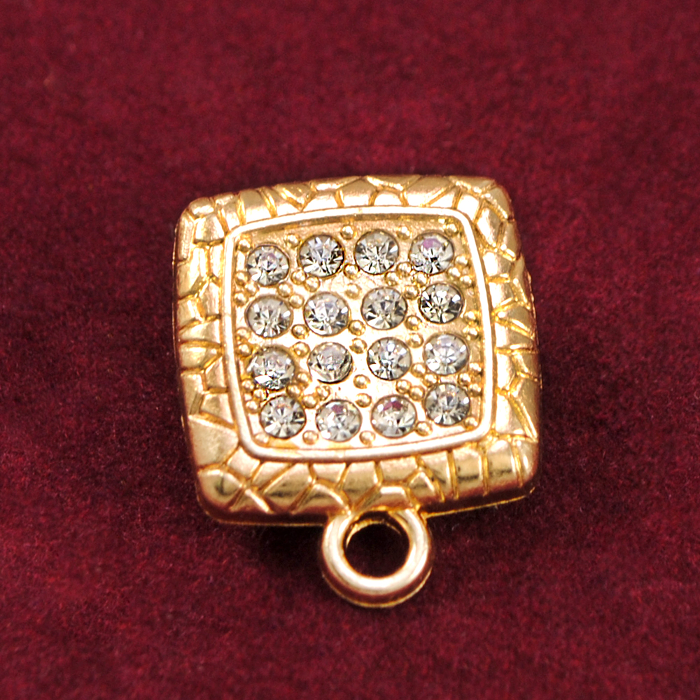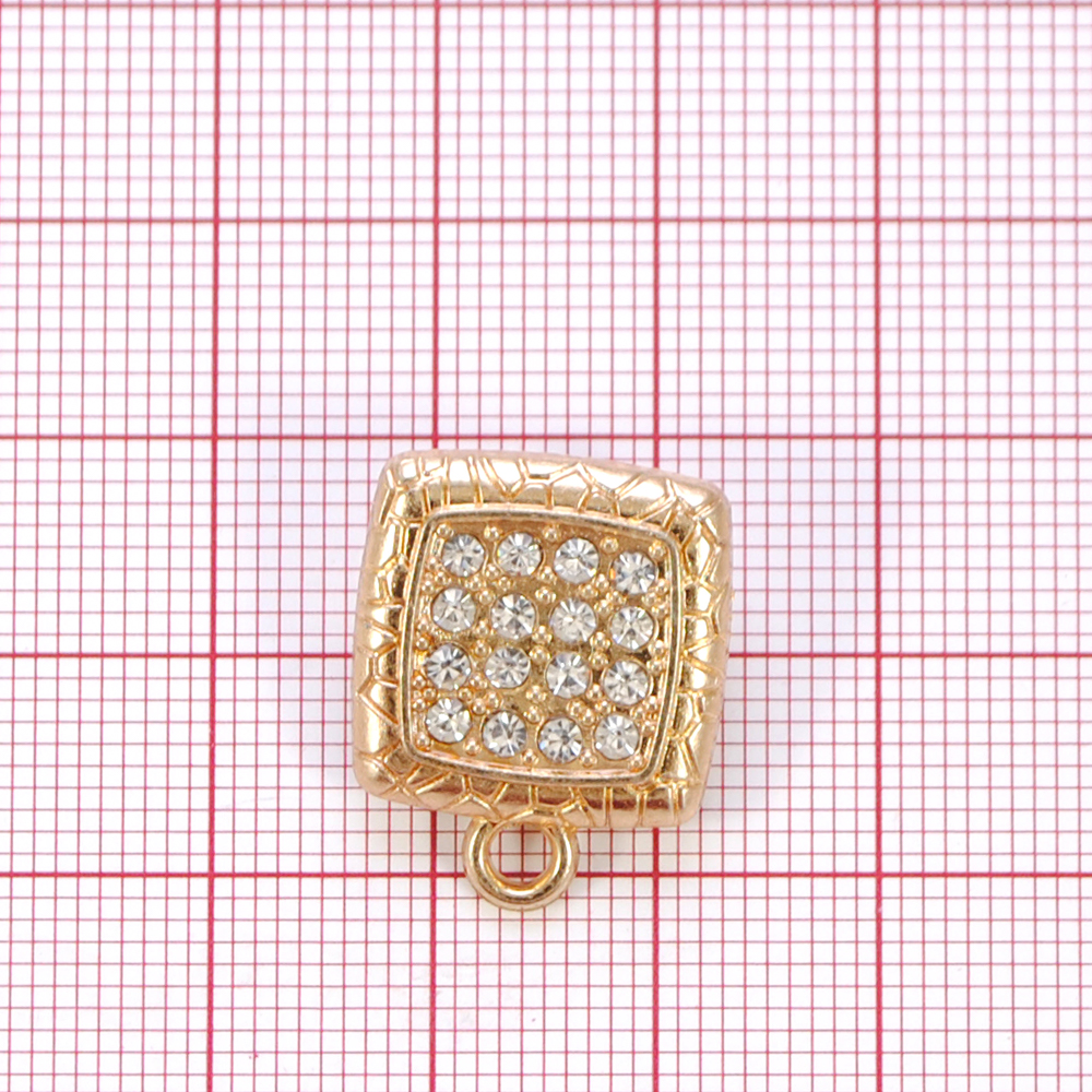 Подвеска металл Квадрат со стразами, 1,7*1,7см, зол., камни АА, шт