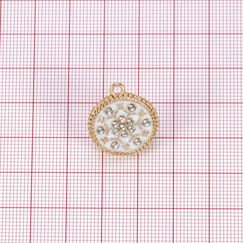Подвеска металл Снежинка, 2*2см, зол., бел.эмаль, камни АА, шт