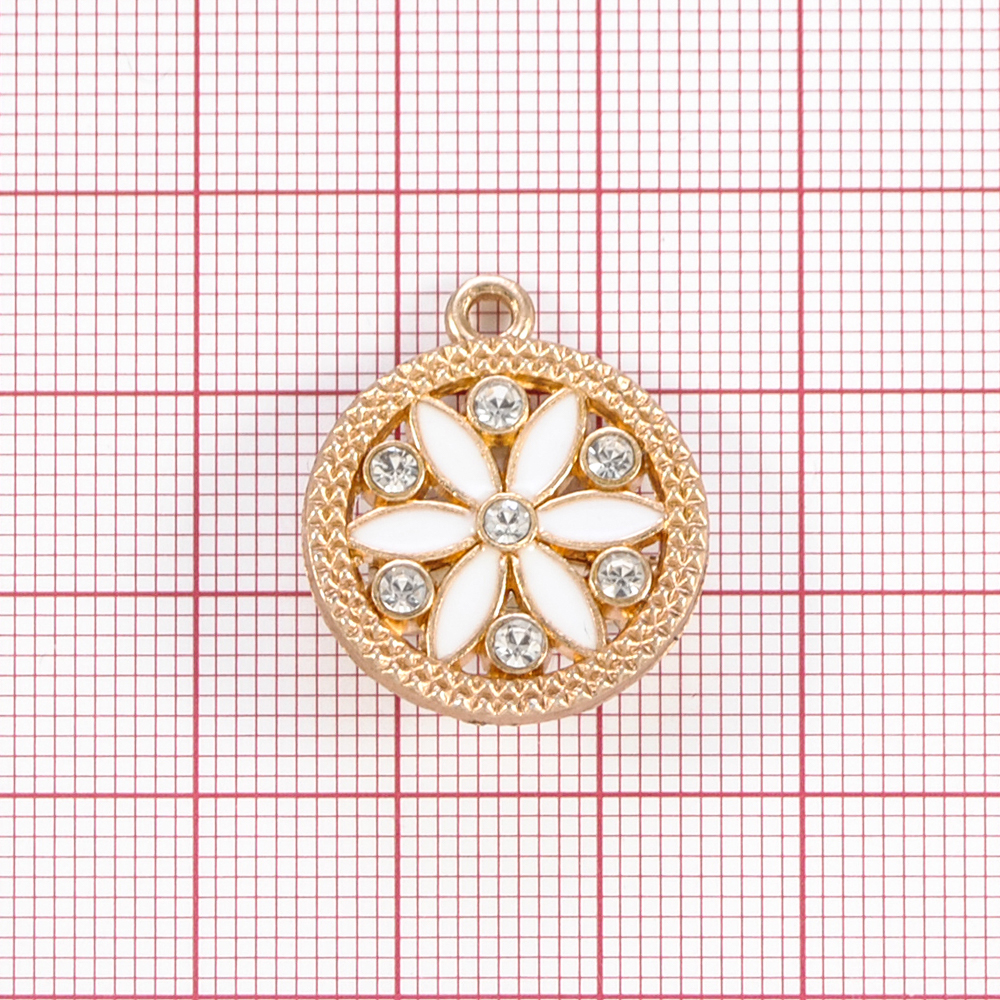 Подвеска металл Цветок, 2*2см, зол., бел.эмаль, камни АА, шт