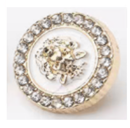 Пуговица металл круглая со стразами, 1,2см, белый, золото, белые камни, шт