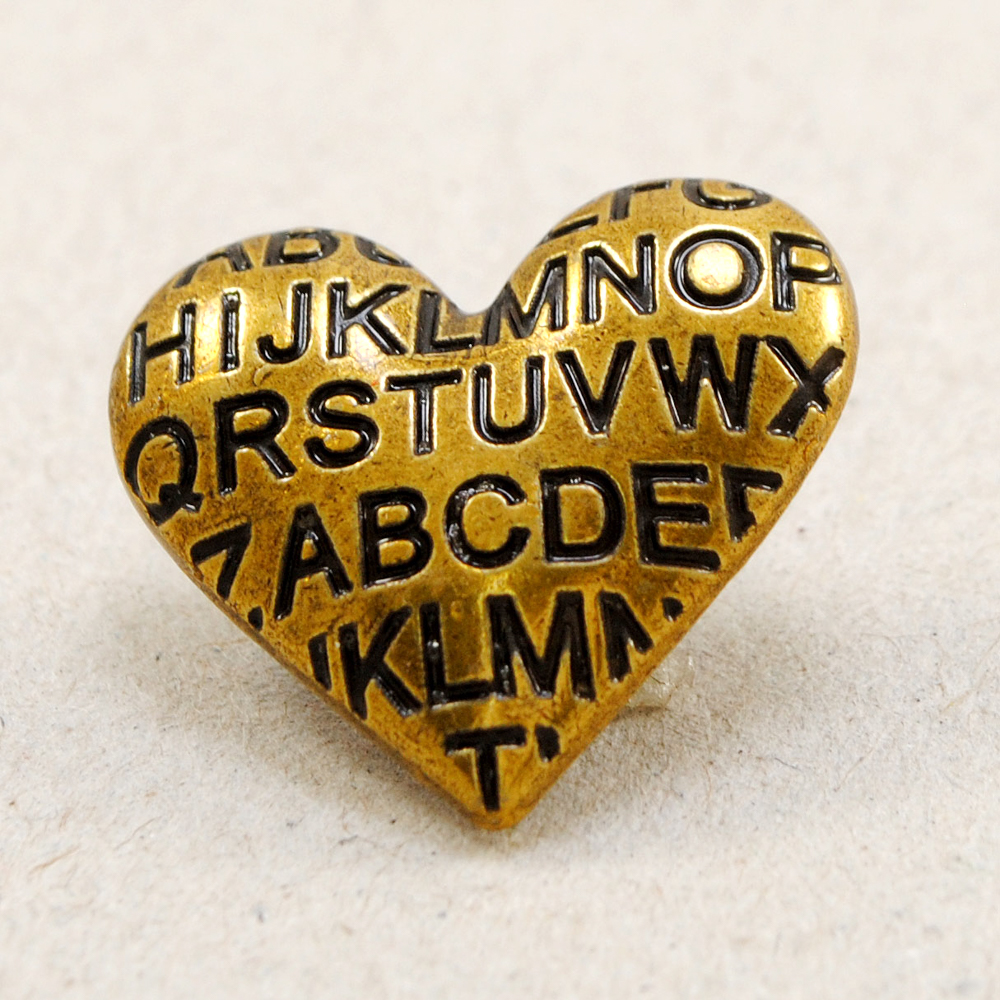 Пуговица металл Сердце с текстом, 2,3см, бронза, шт