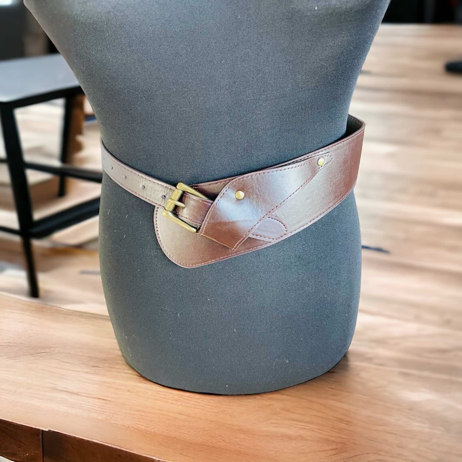 Пояс кожзам с металлической пряжкой, коричневый, металл, шт