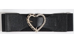 Пояс кожзам с металлической пряжкой Сердце, черный,золото, камни. шт.
