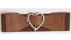 Пояс кожзам с металлической пряжкой Сердце, коричневый,золото, камни. шт.