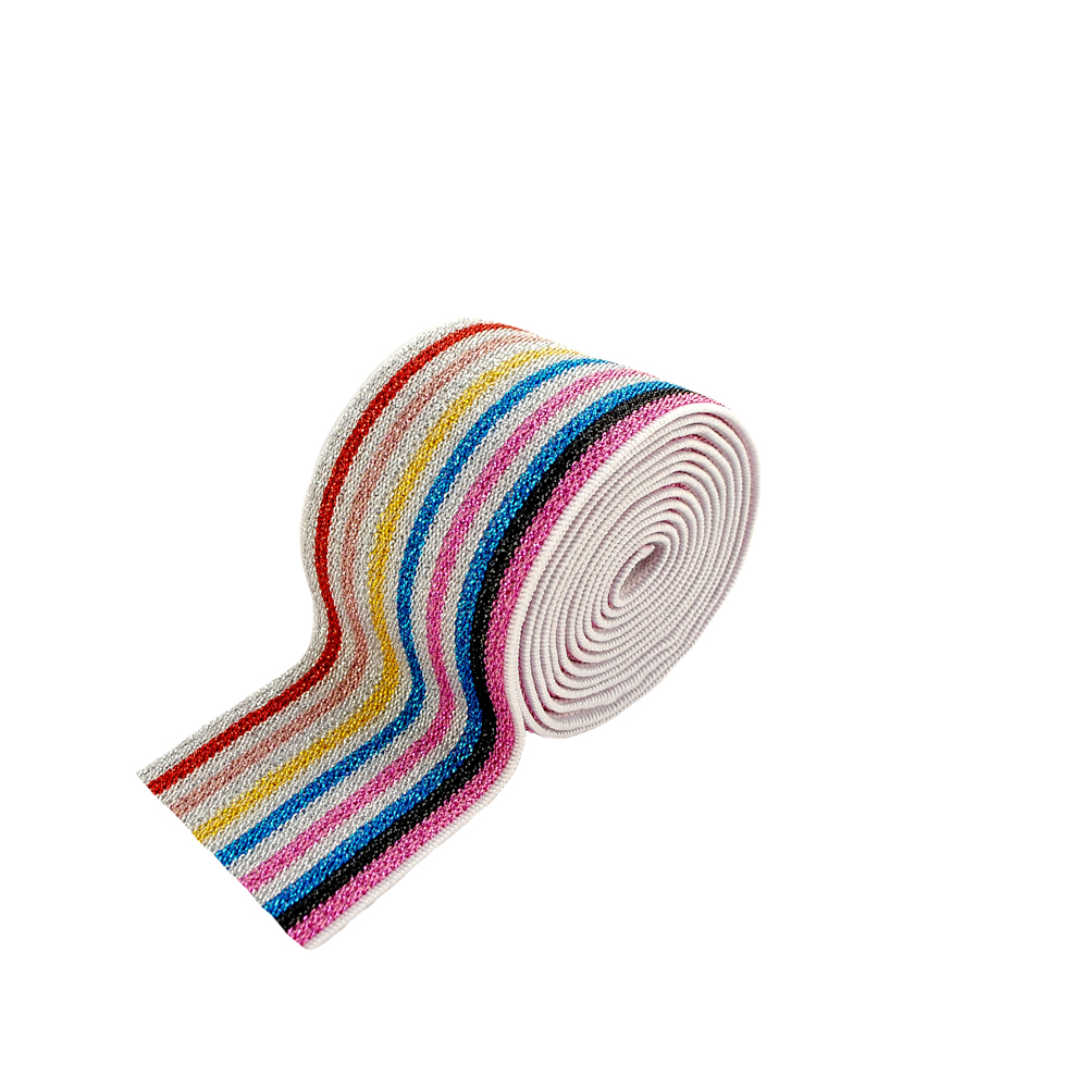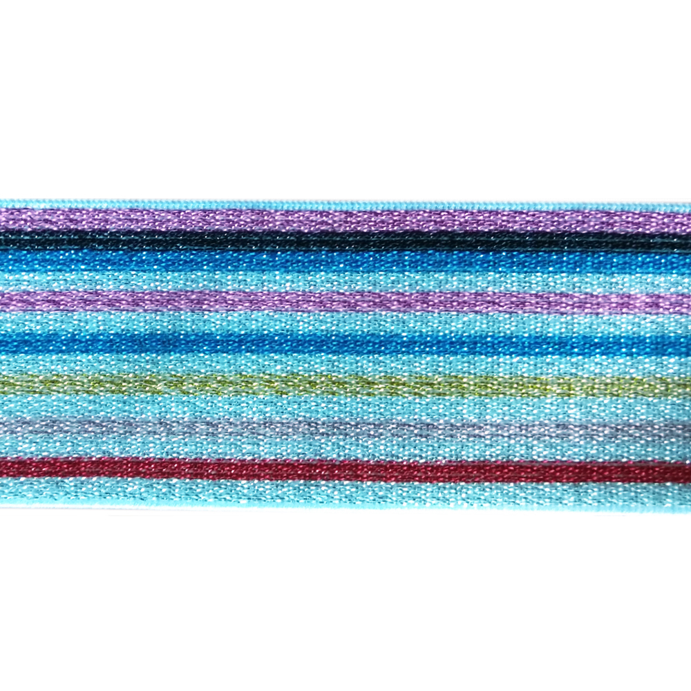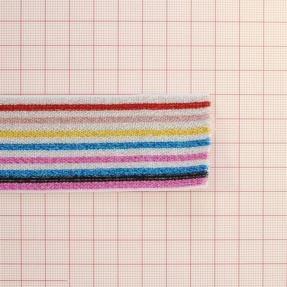 Резинка люрекс Полосы 4см, голубой и розовый, черный, синий, желтый, серебряный, красный люрекс, 50ярд