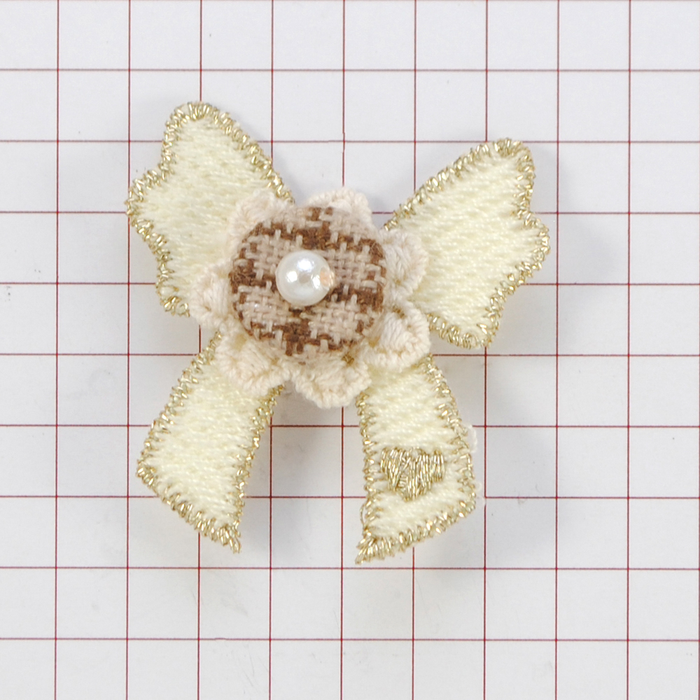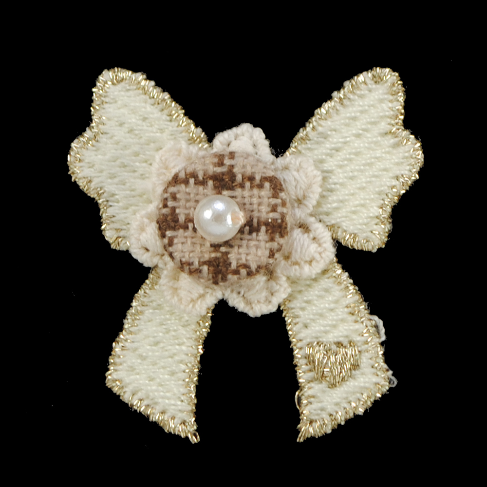 Аппликация тканевая пришивная детская Бант с сердечком, 3см, кремовый, белый, коричневый, шт