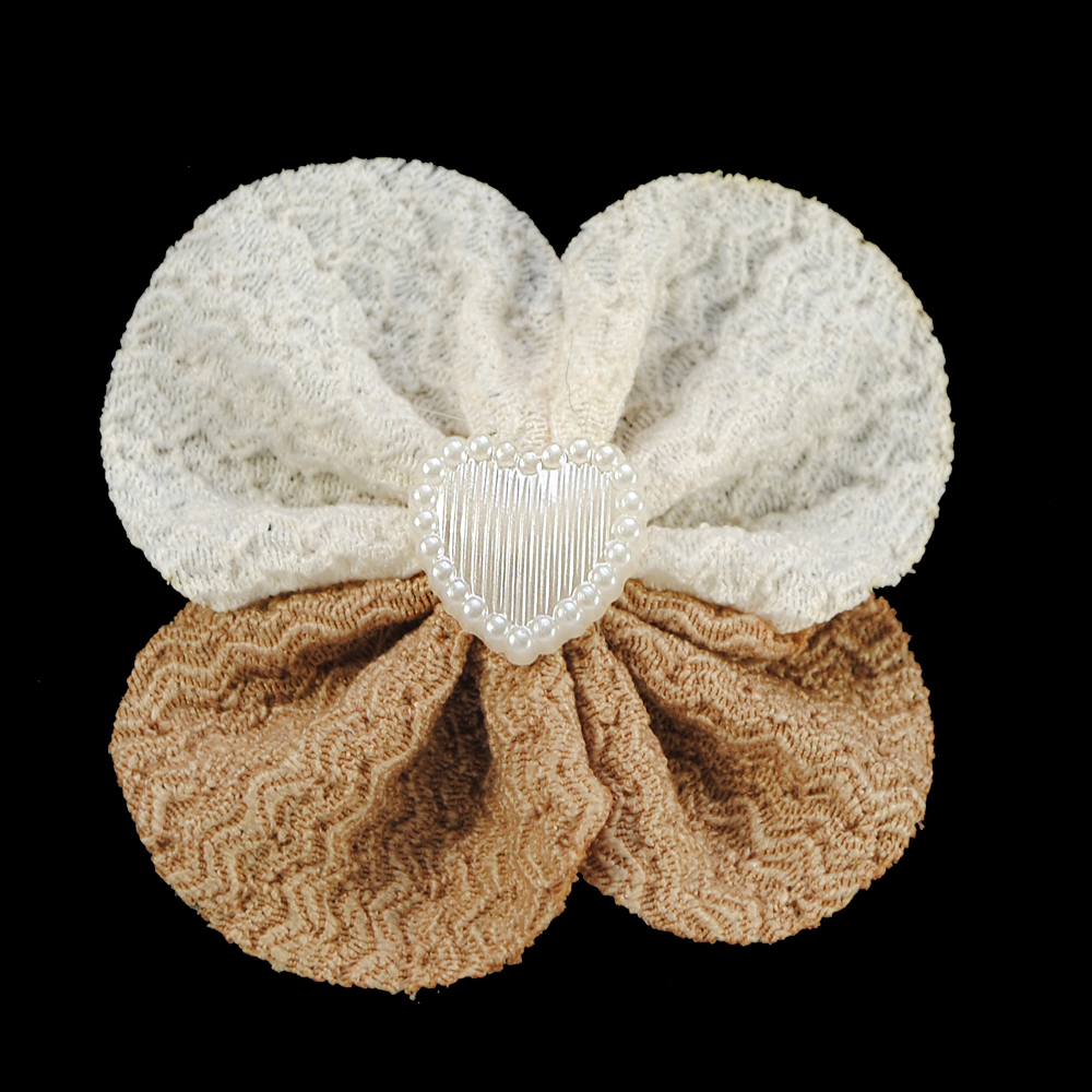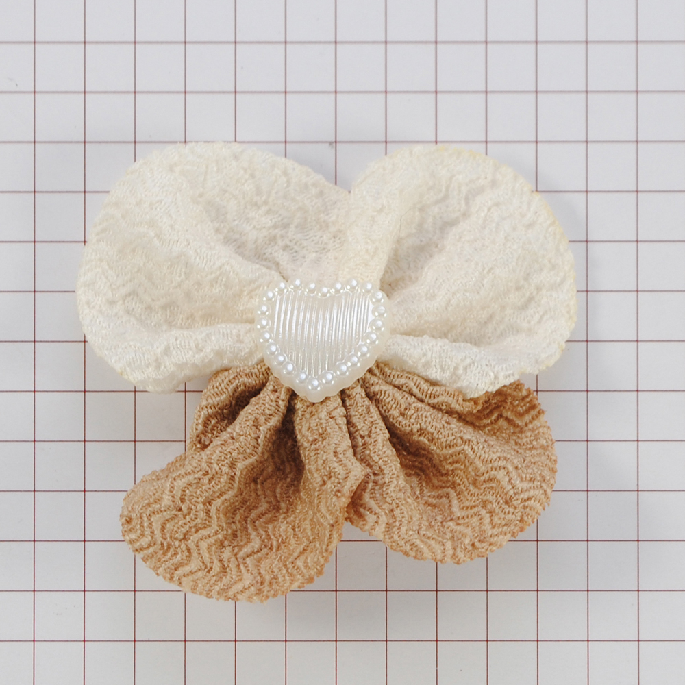 Аппликация тканевая пришивная детская Цветок с сердечком, 5см, белый, коричневый, бусины, шт